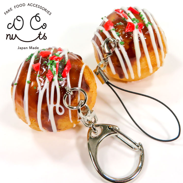 人気のたこ焼きにマヨネーズと青のり、紅しょうがをトッピング。本物のたこ焼きそっくりな食品サンプルのアクセサリーです。