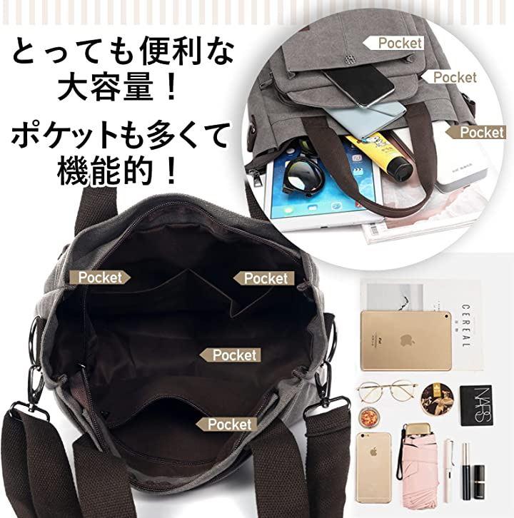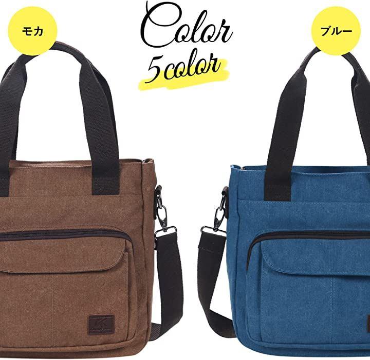 ・《カラー》5色ブラック・グレー・ライトブルー・レッド・モカ 《素材》 ・表地:キャンバス ・裏地:ポリエステル 《サイズ》縦28cmx横幅29cmxマチ約11cm 《重量》約550g 《ハンドル長さ》42cm 《ハンドル高さ》21cm 《ショルダーベルト長さ》最長130cm 《ポケット仕様》 ・外側:フロント(2) / / 背面ポケット(1)・内側:内部ファスナーポケット(1) / オープンポケット(2)《PC対応》ノートパソコン12inch 《A4収納》* 《B5収納》*《肩掛け》*