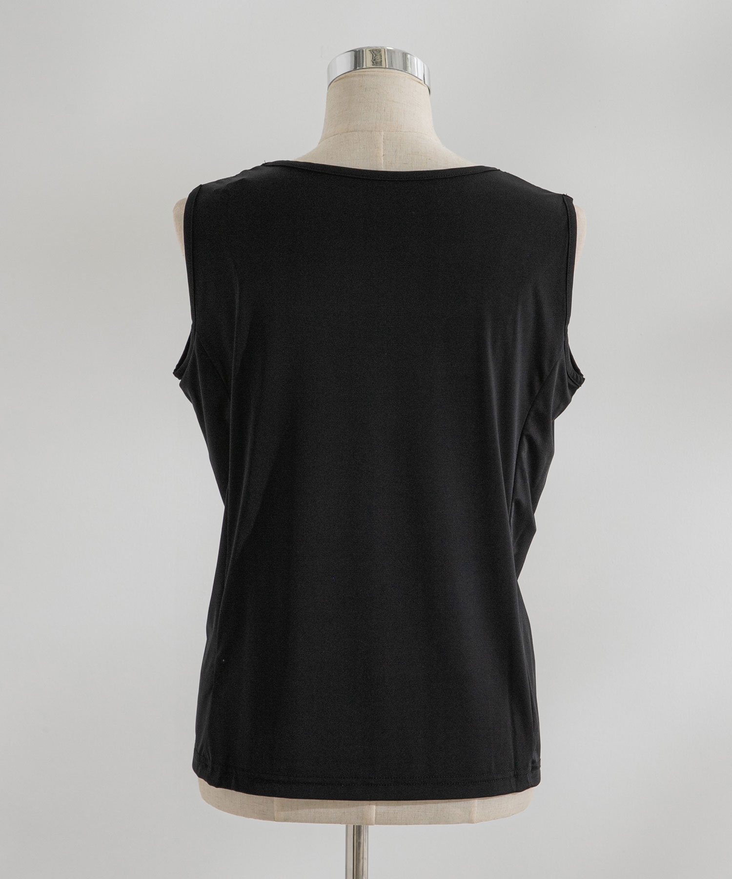 【スタイリング】シアートップスやカーデのインナーとして大活躍。肩線の裏側にブラ紐のズレ防止タブ付きなので太めのブラ紐も挟めインナーでとして使いやすい1着です。**********************透け感:ややあり裏地:あり伸縮性:あり光沢感:あり生地の厚さ:薄手**********************《透け感》ややあり 《生地の厚さ》薄手 《裏地》あり 《伸縮性》あり《生産国》中国