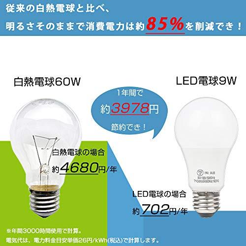 【省エネ】このLED電球は白熱電球60W形相当で、従来の白熱電球と比べ、消費電力は約85%を削減できます!家計にも優しい商品です。