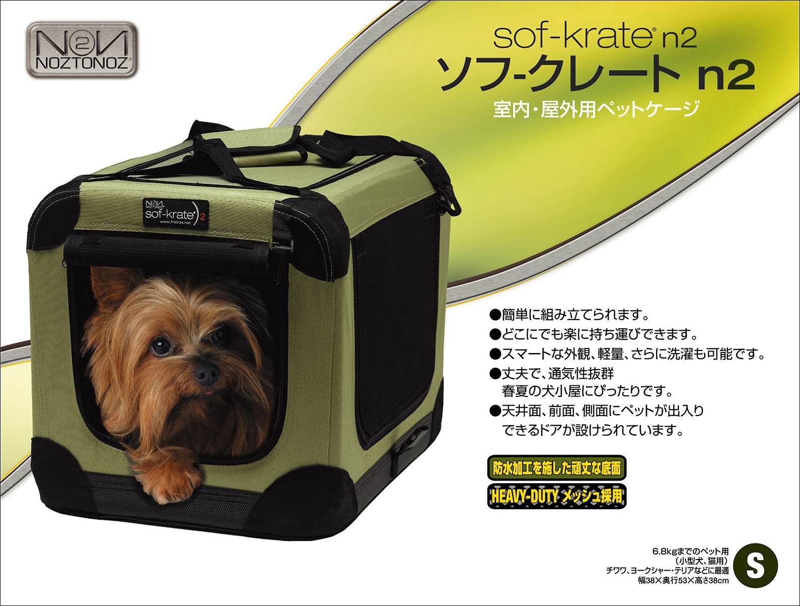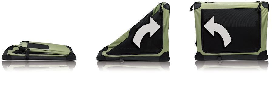 折りたたんで持ち運び可能な布製ペットケージ。本体サイズ (幅X奥行X高さ) :38.0×53.0×38.0cmワンタッチで組み立て、折りたたみできるスライド・ホールディングシステム。金属フレームを使用し、高い強度を実現しました。底面には防水のビニール生地を使用。地面からの水や湿気が内部に入り込まないので、直接地面に置いても大丈夫。本体カバーは取り外して丸洗いもOK。汚れが拭き取りやすいよう内側は撥水加工されています。天面ドアと正面メッシュドアは巻き上げてマジックテープで固定できます。