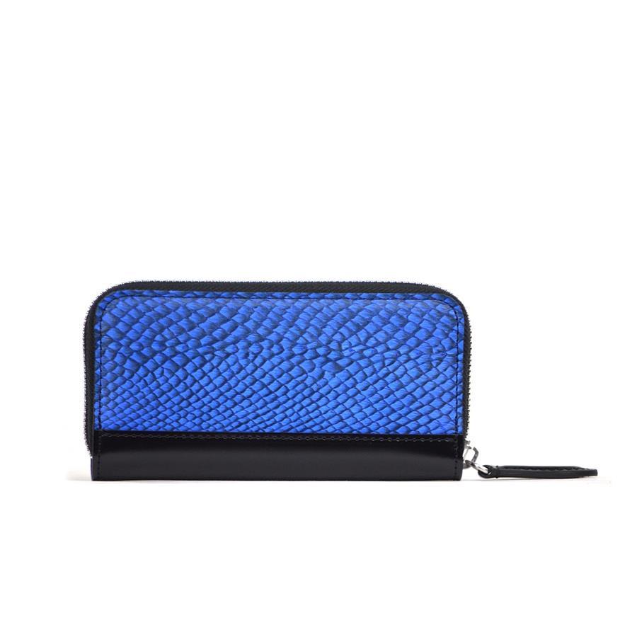 About SALMON LEATHER食用に管理されたアトランティックサーモンの皮を副産物とし、新喜皮革において持続可能な資源として活用できるよう仕上げた素材です。サーモン革は他にはない鱗模様が特徴で1点1点異なり、経年による風合いの変化をお楽しみいただけます。内装にもホースハイドを使用することで堅牢度が高い製品を提供いたしております。