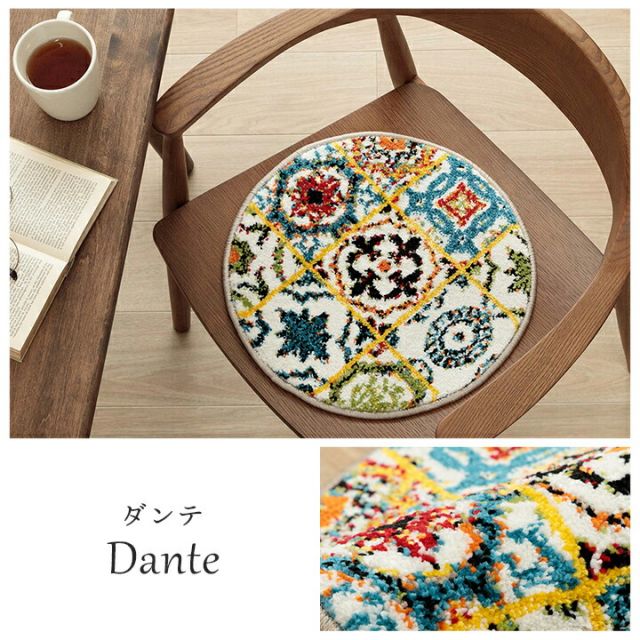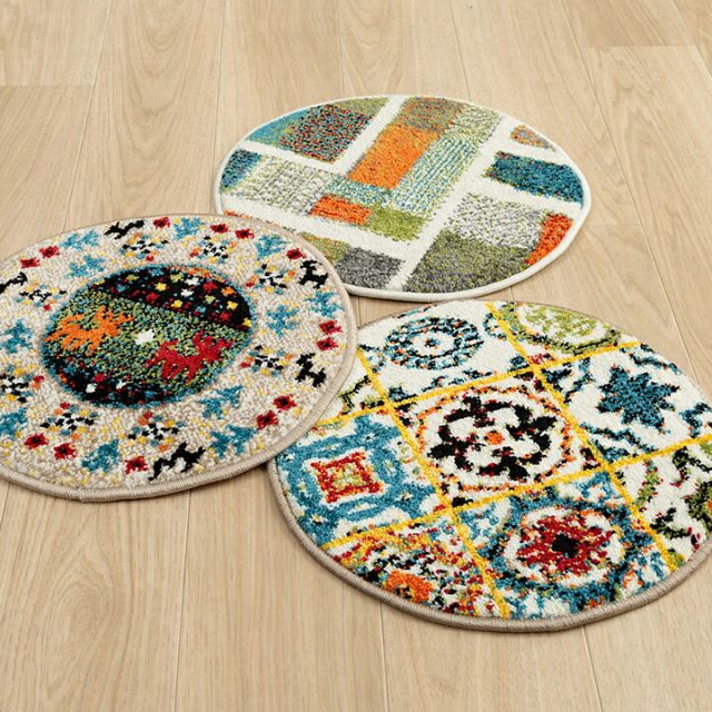クッション チェアパッド 薄手 ウィルトン 織り トルコ製 円形 丈夫 汚れにくい 床用 キズ防止マット ギャベ柄 モンドリアン柄 モロッコタイル柄 抗菌防臭 消臭 40cm丸 イビサ