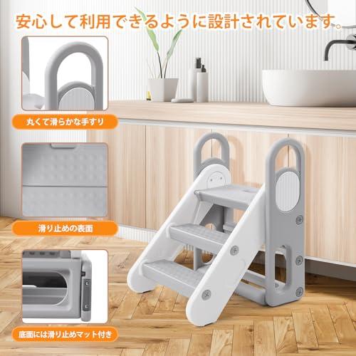 【安全素材・滑り止め】子供用折りたたみステップスツールは、耐久性に優れた安全素材で作られており、しっかりとした質感を持っています。滑り止めの足と頑丈な構造で、小さなお子様でも安心してお使いいただけるように様々な工夫をしています。 【ハンドル付き】滑らかな手すりで、鋭いエッジや突起物がなく、丁寧に仕上げられており、お子様の肌を守ります。ハンドルが付いているので、子供が安定して立ち上がることができます。 【簡単組立・切り替え可能】幅広い用途に適した変換可能な多機能ステップスツールは、日本語説明書が付属しているので、道具が不要で、簡単に組み立てることができます。3段階または2段階に調節可能で、さまざまな年齢の子供に対応しています。 【省スペース収納】キッズ踏み台は、簡単に折りたたむことができ、使わない時はコンパクトでスリムな形状になり、狭い場所でもすっきりと収納することができます。 【様々なシーンで活躍】トイレトレーニングやキッチンのお手伝い、洗面所など、さまざまなシーンでお使いいただけます。子供が独立するための最適な幼児学習スツールであり、家事に忙しい時でも子供と一緒に過ごすことができます。一台あれば家中どこでも活躍できますね。 適格請求書を発行できますので、必要がありましたら、メールでご連絡ください。
