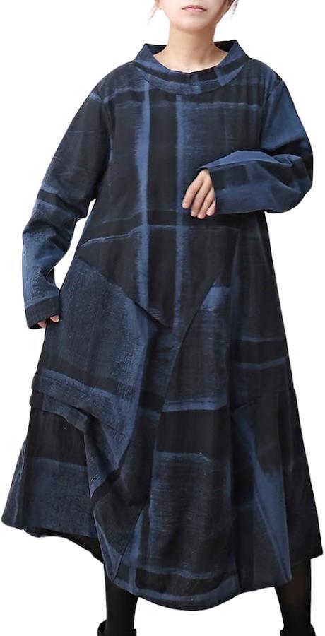 「個性が光るおしゃれワンピース」◉秋 冬のトレンドを取り入れたロングスタイルの長袖 ワンピースは、和風の和柄デザインとアジアン・エスニックテイストを融合させた個性的な雰囲気に仕上がりました。
