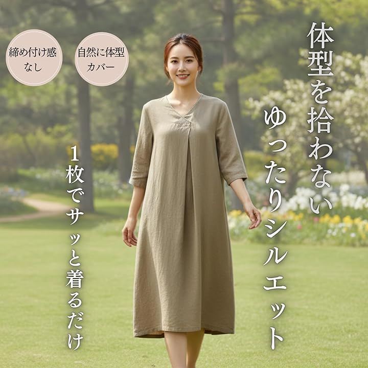 ナチュラルでやさしい雰囲気のaラインワンピース。