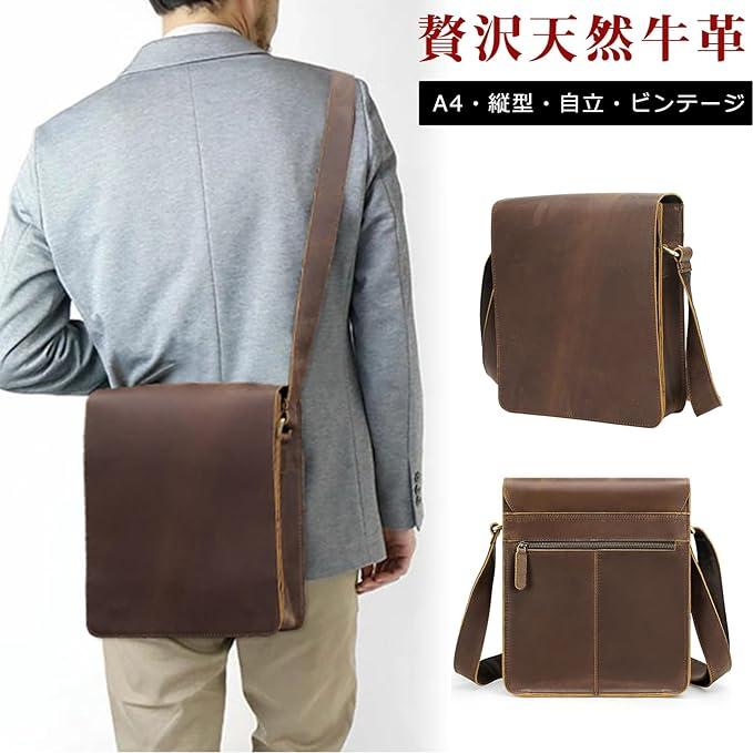 [TIDING] A4 ショルダーバッグ 厚手牛革 縦型 自立 メンズ 斜め掛けバッグ YKK iPad 本革 ビンテージ ブラウン【日本会社正規品】