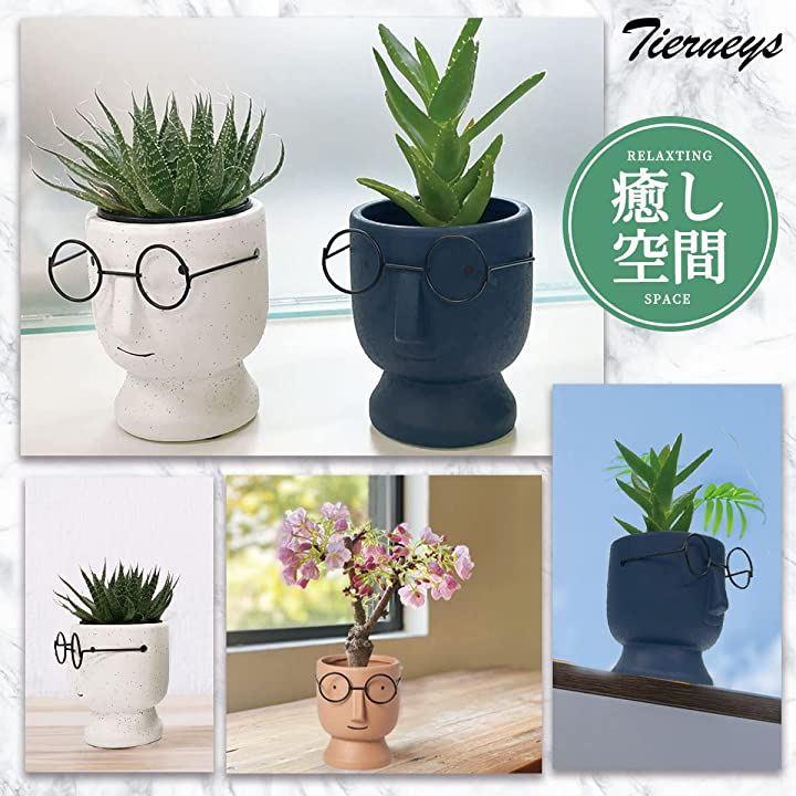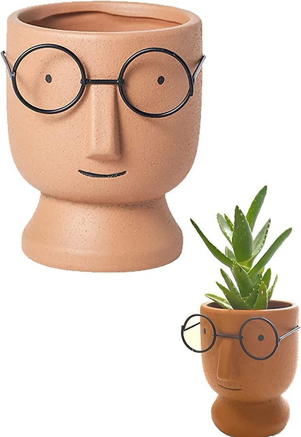 ・vかわいらしい眼鏡をかけた顔のデザインの植木鉢です。