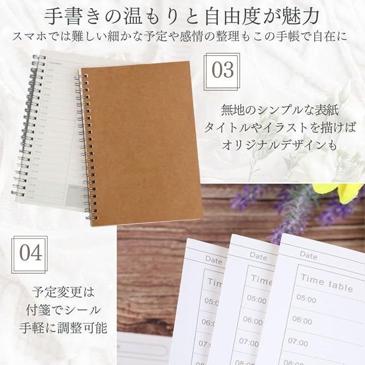 このB6サイズ手帳で、日々のスケジュール、目標、アイデアを手軽に管理。