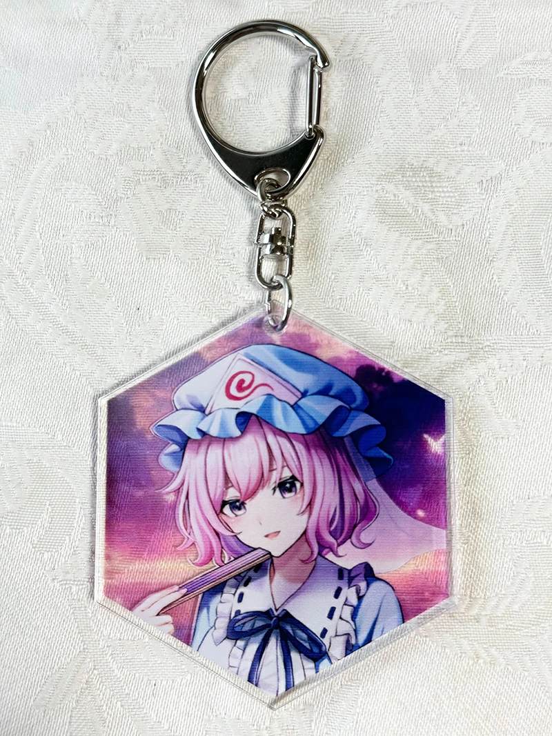■コメント:最長約縦7cm、横6cmの六角形の両面アクリルキーホルダーです。