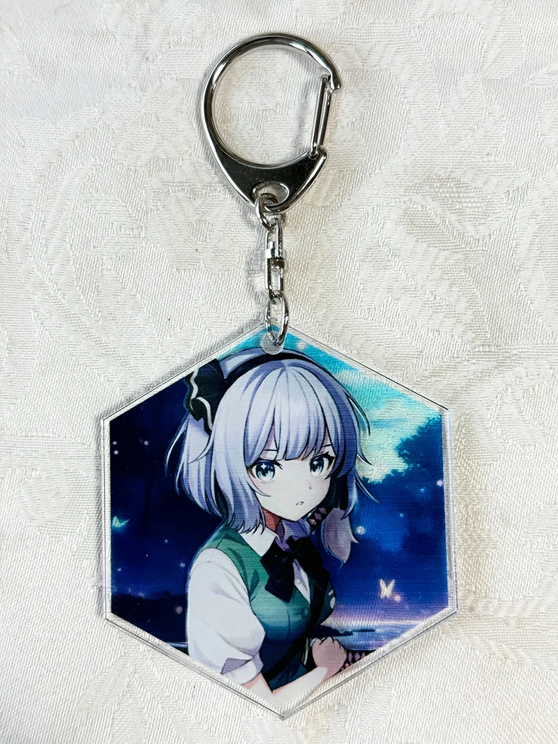 ■コメント:最長約縦7cm、横6cmの六角形の両面アクリルキーホルダーです。