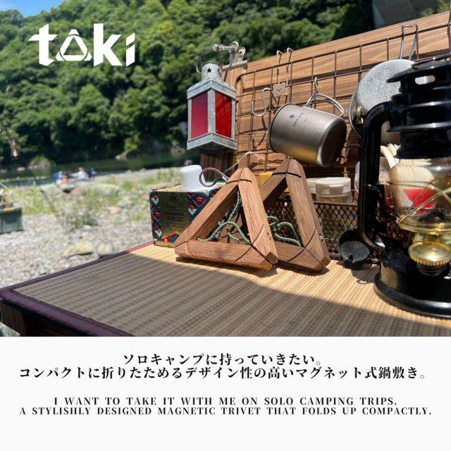 商品説明アウトドアシーンを彩る、機能的でスタイリッシュな折りたたみ鍋敷き。TOUKIFoldingTrivetは、特にソロキャンプに最適なアイテムです。この鍋敷きは、軽量で持ち運びが非常に簡単なため、キャンプやピクニックのお供として重宝します。また、シンプルで洗練されたデザインは、自然の風景にも調和し、アウトドア料理をより一層楽しませてくれます。使用時の安定感を確保し、熱に強い仕様で安心してお使いいただけます。キャンプでよく使うOD缶スタンドとしても使える2Way仕様。キャンプのおしゃれなスタイルを演出しながら、実用性を兼ね備えたtokiFoldingTrivetで、特別なひとときをお過ごしください。