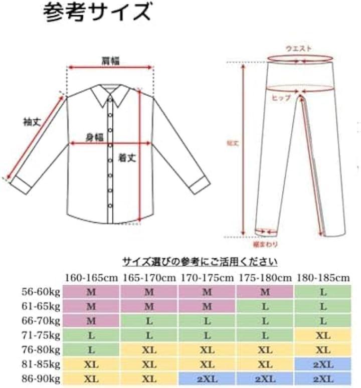 「サイズ」L <ジャケット>肩幅45/袖丈58/身幅55/着丈66<パンツ>ウェスト72-80/ヒップ98/丈97/また下70 XL<ジャケット>肩幅47/袖丈62/身幅56/着丈70<パンツ>ウェスト74-82/ヒップ100/丈99/また下71