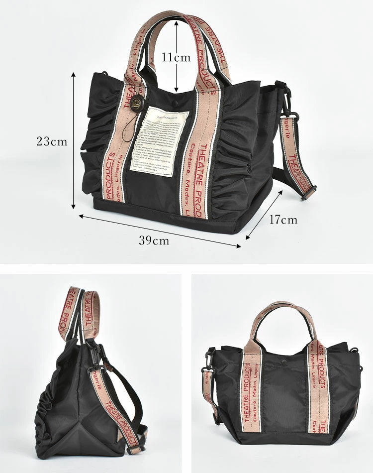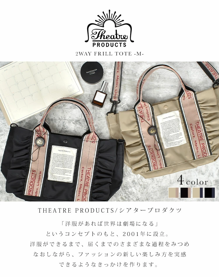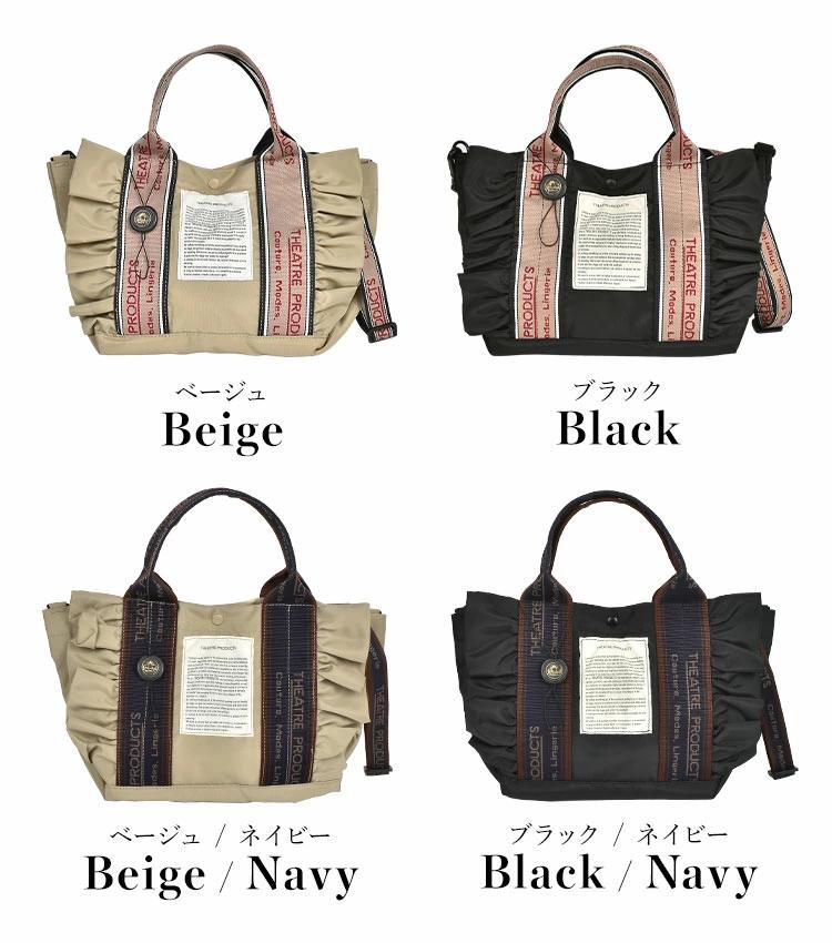 ■関連キーワード10代 20代 30代 40代 50代 60代 中学校 高校 大学 中学生 高校生 大学生 学生 学校 通学 通勤 娘 孫 女性 女子 女の子 ガールズ レディース girl 母 おかあさん ママ バースデー 誕生日 プレゼント プチ ミニ ギフト お祝い お返し 粗品 景品 送別会 イベント 母の日 クリスマス クリスマスプレゼント バレンタイン チョコ以外 ホワイトデー おしゃれ オシャレ お洒落 かわいい 可愛い カワイイ シンプル トートバッグ ショルダーバッグ 2way フリル シアタープロダクツ THEATRE PRODUCTS CL231034 CL240363 フリルトートバッグ Mサイズ 斜めがけ 大人 軽量 ナイロン ミニトート A5 小さめ トートバック 黒 ブラック ベージュ シアタープロダクト ブランド ナイロンバッグ 斜め掛け ハンドバッグ ミニバッグ ショルダーバック フリルバッグ ジャガードテープ バッグ かばん 鞄 デイリー カジュアル 軽い ミニトートバック A5が入る black beige 斜め掛けバッグ 斜め掛けバック ハンドバック フリルバック ミニバック ショルダー 仕事 ビジネス オフィス 普段使い 持ち手 太い 小さめトートバッグ 小さいトートバッグ ネイビーテープ 肩掛け 肩かけ