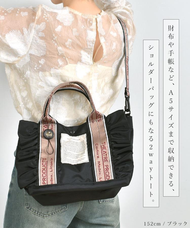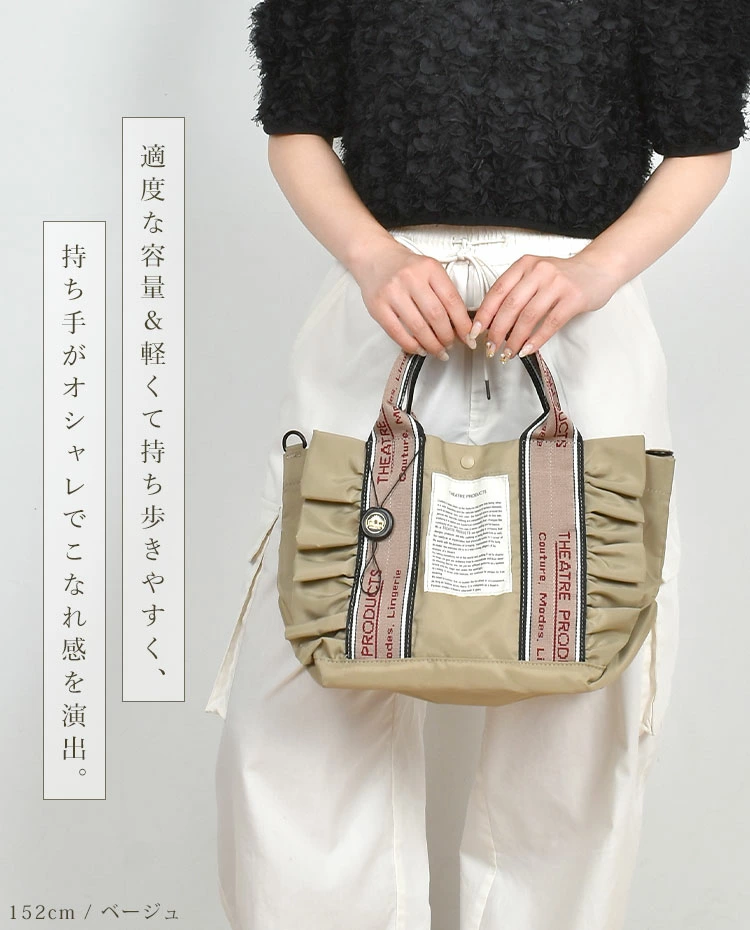 ■関連キーワード10代 20代 30代 40代 50代 60代 中学校 高校 大学 中学生 高校生 大学生 学生 学校 通学 通勤 娘 孫 女性 女子 女の子 ガールズ レディース girl 母 おかあさん ママ バースデー 誕生日 プレゼント プチ ミニ ギフト お祝い お返し 粗品 景品 送別会 イベント 母の日 クリスマス クリスマスプレゼント バレンタイン チョコ以外 ホワイトデー おしゃれ オシャレ お洒落 かわいい 可愛い カワイイ シンプル トートバッグ ショルダーバッグ 2way フリル シアタープロダクツ THEATRE PRODUCTS CL231034 CL240363 フリルトートバッグ Mサイズ 斜めがけ 大人 軽量 ナイロン ミニトート A5 小さめ トートバック 黒 ブラック ベージュ シアタープロダクト ブランド ナイロンバッグ 斜め掛け ハンドバッグ ミニバッグ ショルダーバック フリルバッグ ジャガードテープ バッグ かばん 鞄 デイリー カジュアル 軽い ミニトートバック A5が入る black beige 斜め掛けバッグ 斜め掛けバック ハンドバック フリルバック ミニバック ショルダー 仕事 ビジネス オフィス 普段使い 持ち手 太い 小さめトートバッグ 小さいトートバッグ ネイビーテープ 肩掛け 肩かけ