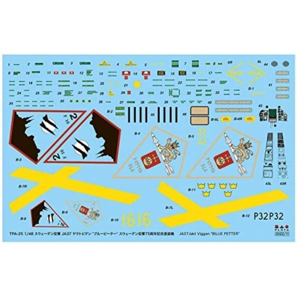 プラッツ/イタレリ 1/48 スウェーデン空軍 JA37 ヤクトビゲン ブルーピーター スウェーデン空軍75数年記念塗装機 専用エッチングパーツ付属 プラモデル TPA-35