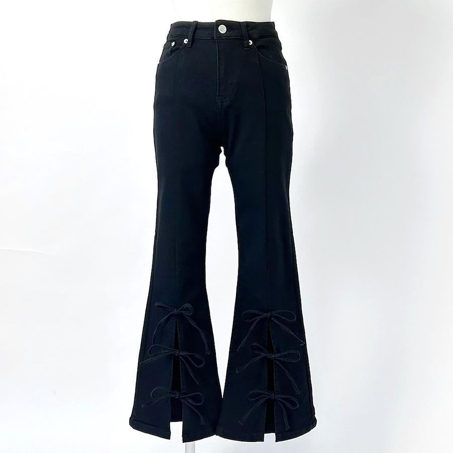 シンプルながら、3つリボンがガーリーさをプラスしてくれるフレアパンツ。