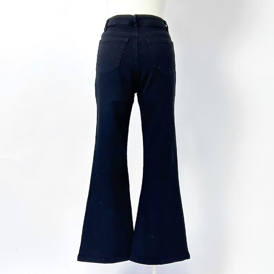 定番のフレアシルエットのパンツで、程よいフィット感のあるシルエットで美脚効果も◎