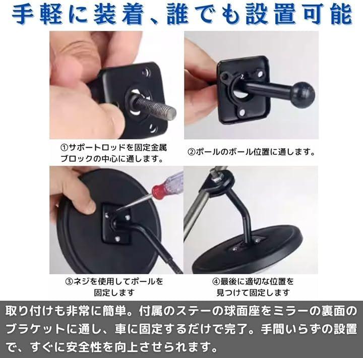 ミラー本体は球面座でステーと接続され、360度回転可能。