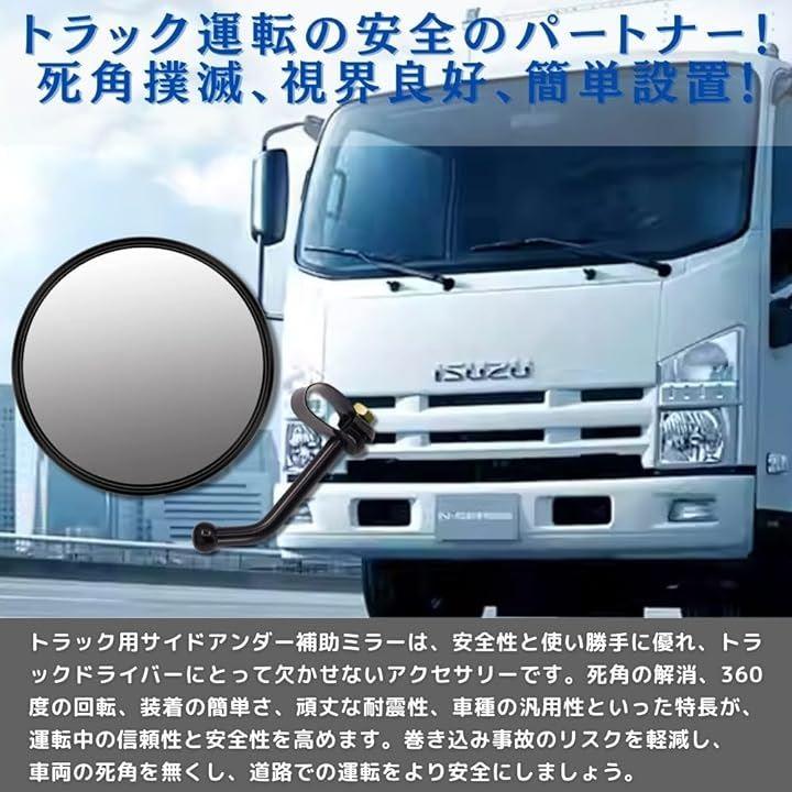 このトラック用サイドアンダー補助ミラーは、安全性と使い勝手に優れ、トラックドライバーにとって欠かせないアクセサリーです。
