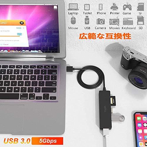 ????【5in1 USB ハブ3.0 拡張が簡単】 1つのUSB 3.0ポートを3つのUSB 3.0データポートとSDおよびMicroSDカードスロットに変換し、USBポートを介して、マウス、外部HDD、USBメモリ、スマートフォン、プリンタなどの周辺機器を接続します,あなたの設備を開拓します。最大5 Gbpsのデータ転送速度を実現。
