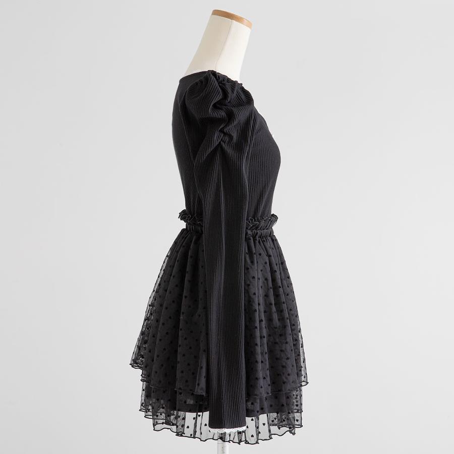チュール×カットソーのドッキングミニワンピースのご紹介。