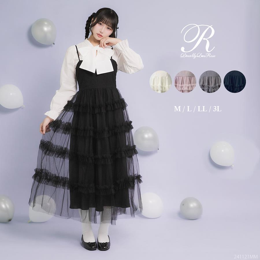 ボリューミーなチュールティアードが可愛く、まるでお人形さんのようになれちゃうキャミワンピです。