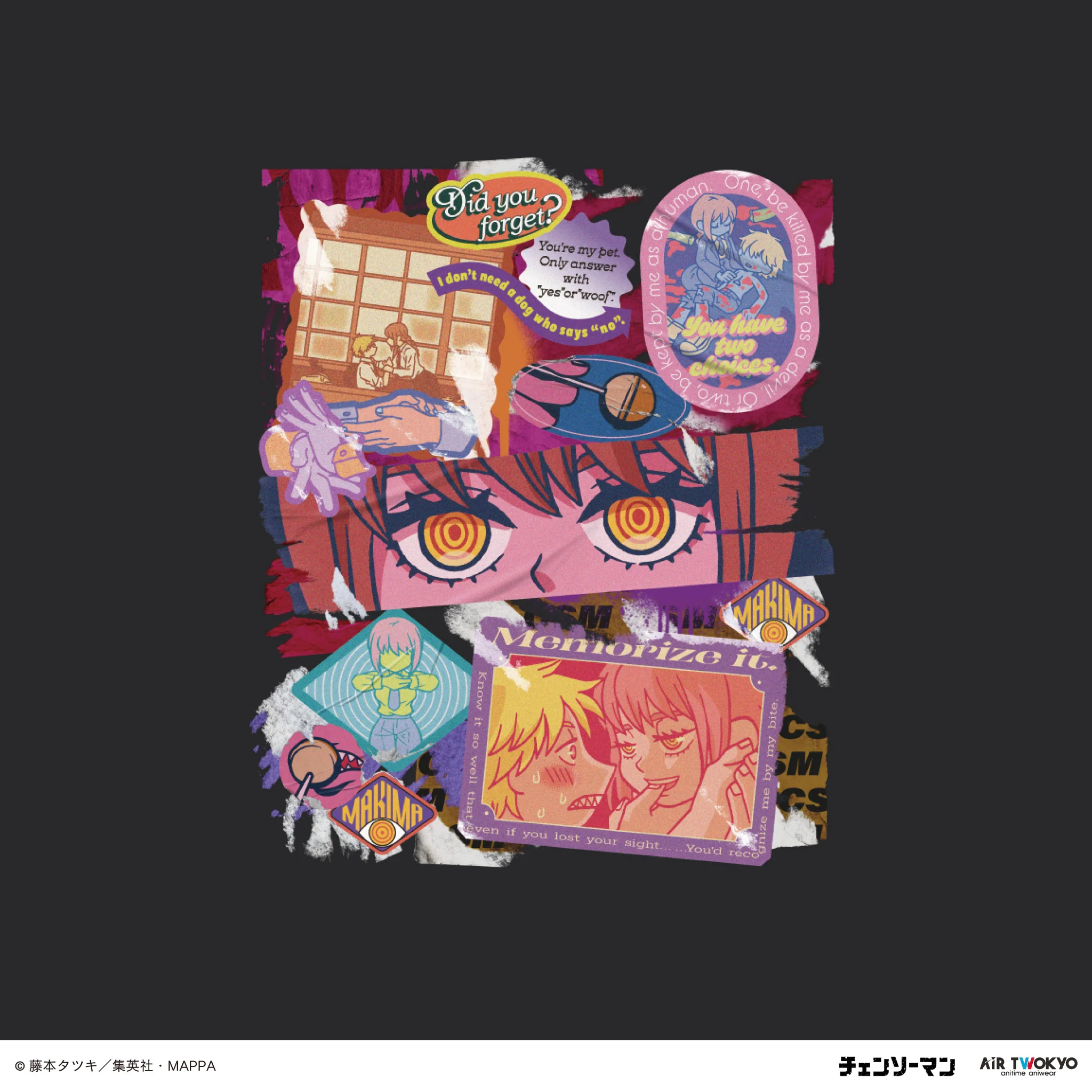 マキマをモチーフとしたアイコン、印象的なシーン、台詞を組み合わせたシーンデザインパーカー。ストリートアートからインスパイアしたデザインであり、デシーンデザイン表現(グラフィックを切り貼りする手法)を用いている。真ん中のマキマの特徴的な眼がアイコニックかつキャッチ—な1枚。