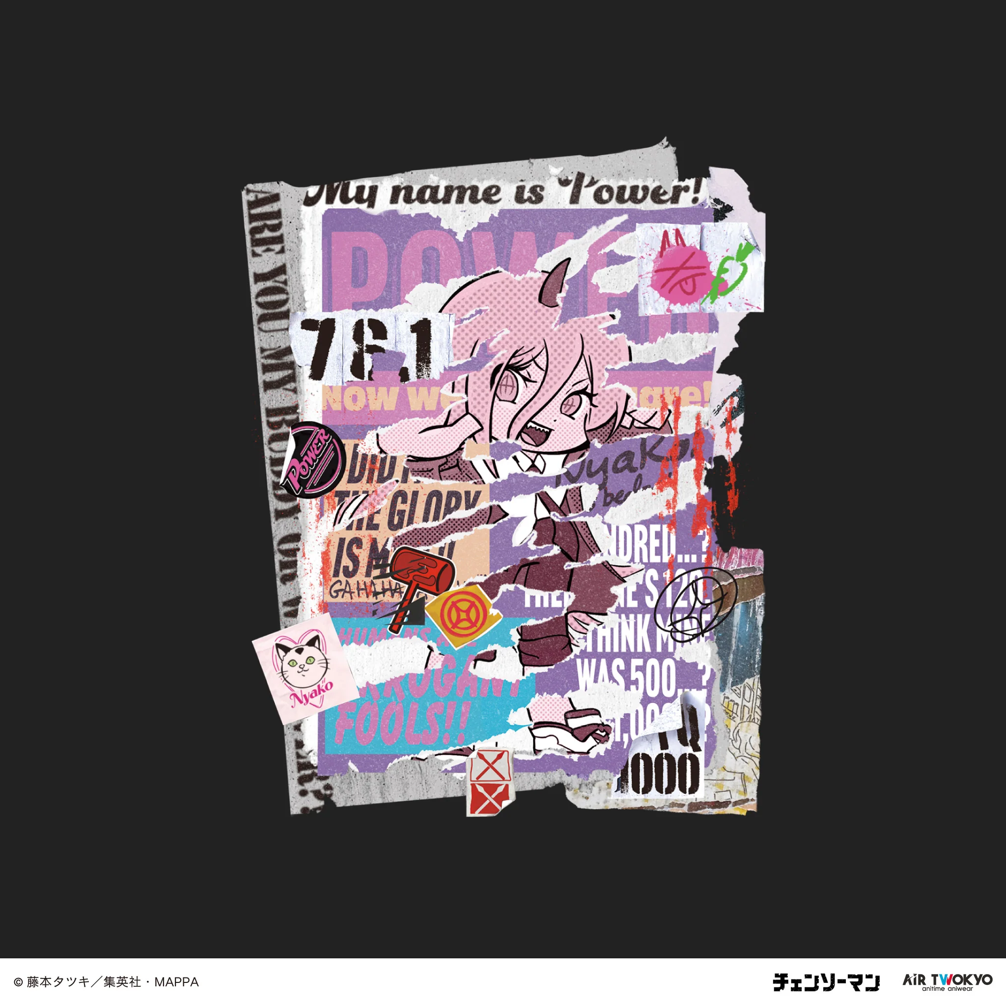 パワーをモチーフとしたアイコン、印象的なシーン、台詞を組み合わせたデザインTシャツ。ストリートアートからインスパイアしたデザインであり、デシーンデザイン表現(グラフィックを切り貼りする手法)を用いている。数々の台詞が切り貼りした中にキュートなパワーのイラストがデザインされており、ニャーコや血の槍、ハンマーなどのアイコンがデザインされた1枚。