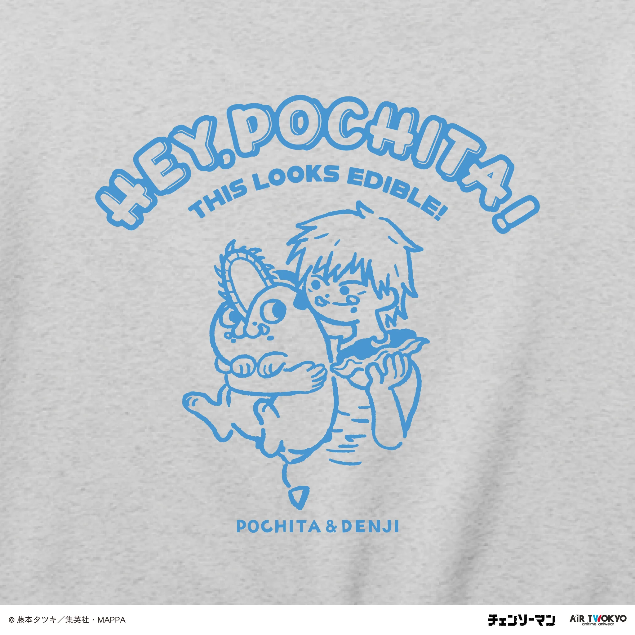 第7話にてデンジとポチタがご飯を一緒に食べるシーンをデザイン胸の英文はデンジの台詞をデザインしており、背中はデンジを待つポチタをイラスト化生地は12.7オンスと厚めでざっくりながらもきれいなシルエットと堅牢なステッチワークが特長