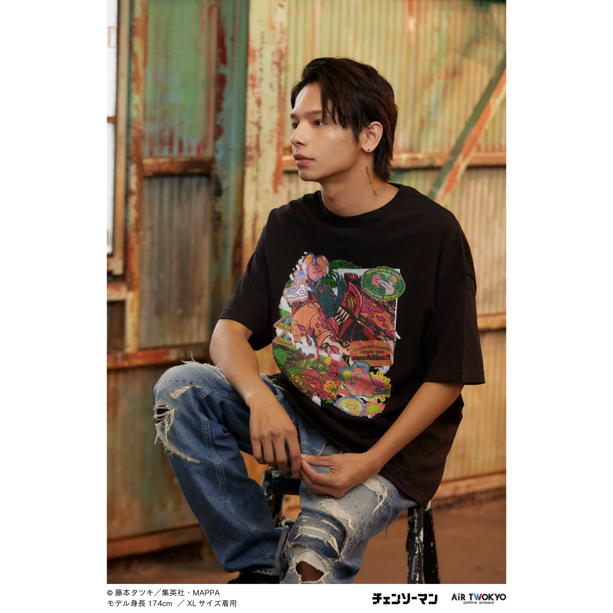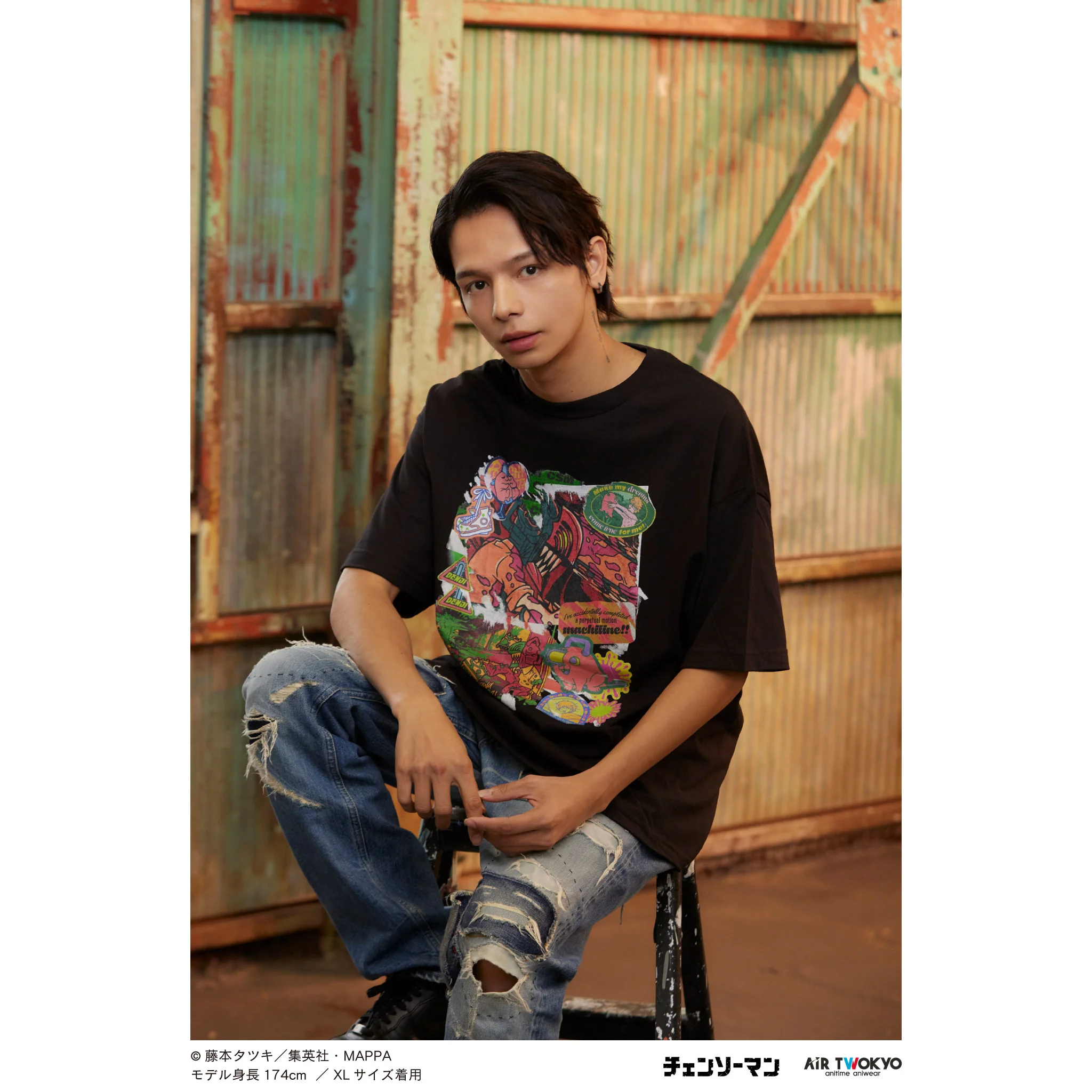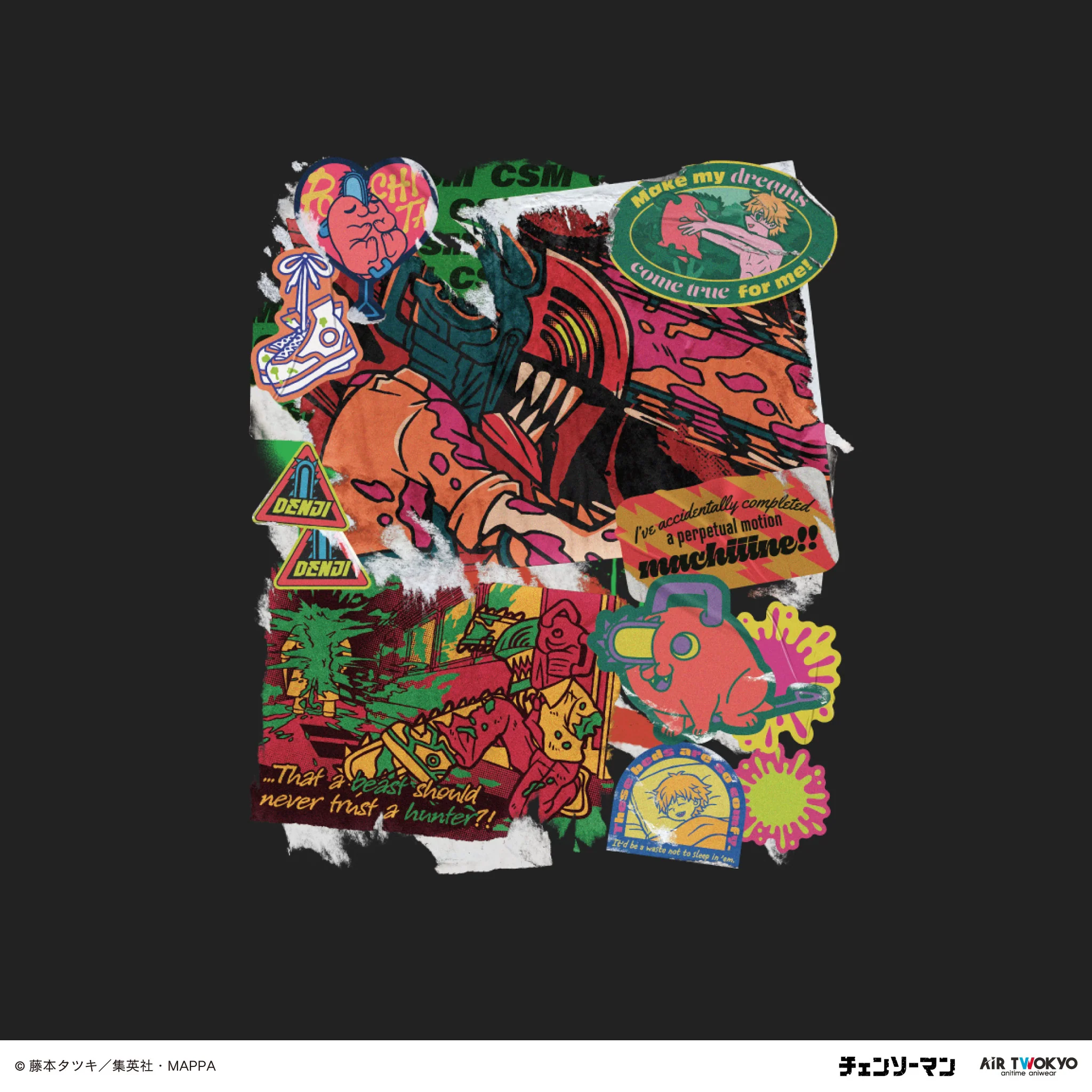 デンジをモチーフとしたアイコン、印象的なシーン、台詞を組み合わせたデザインTシャツ。ストリートアートからインスパイアしたデザインであり、デシーンデザイン表現(グラフィックを切り貼りする手法)を用い、激しいタッチの中に、デンジとポチタのモチーフが愛らしくデザインされた一枚。