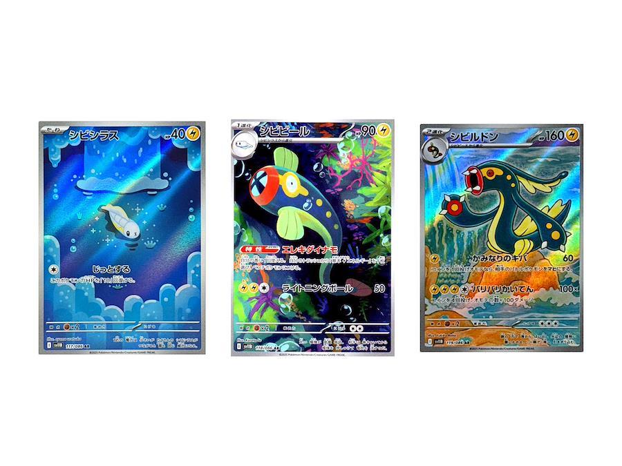 🔥 商品説明こちらは、ポケモンカードゲーム 「ブラックボルト(SV11B)」と「ホワイトフレア(SV11W)」 に収録された、人気ポケモン シビシラス・シビビール・シビルドンの進化ラインが揃った豪華ARカードセットです。