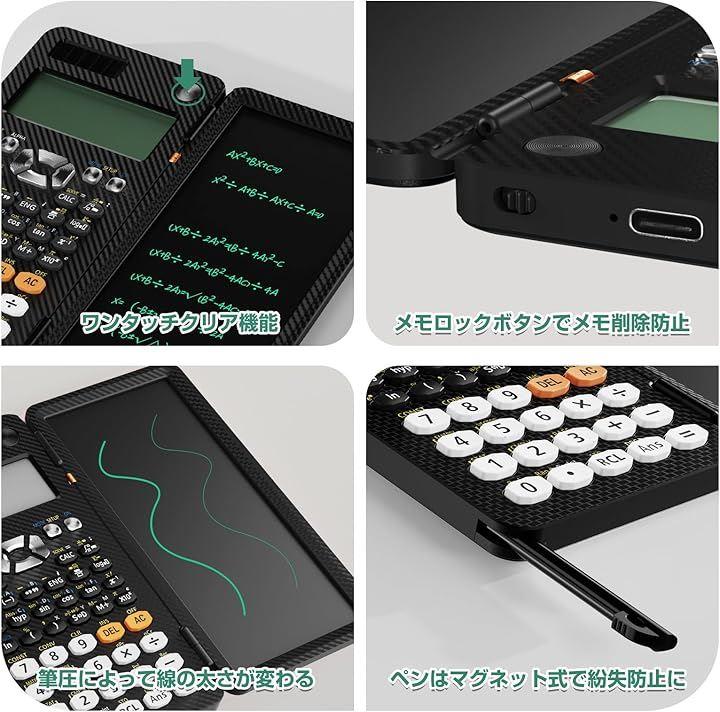 「電卓付き電子メモパッド」6.5インチ電子メモと関数計算機を結合できます、計算しながら計算の内容を電子メモに記録します。
