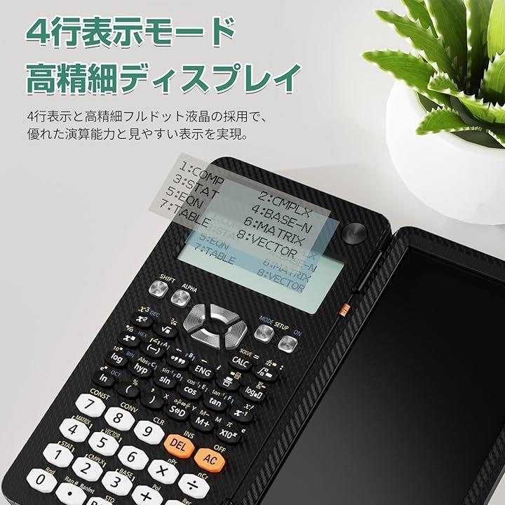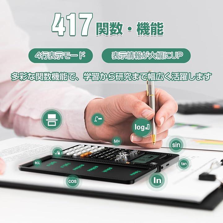 「4行表示」4行表示採用のプログラム関数電卓で複雑な繰り返し計算もスピーディーに処理できます、一覧性もバツグンで読みやすくになります。