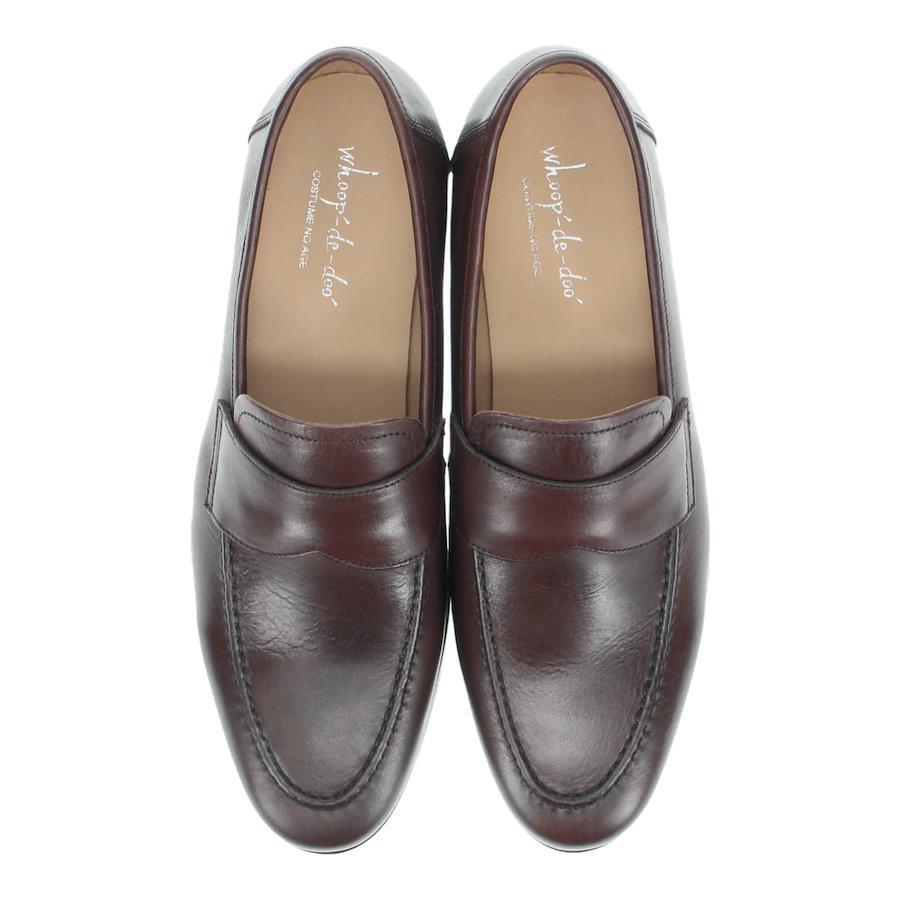 | オンオフ兼用で合わせたいモカシンローファー 【素材】 ワックスを馴染ませた上品な艶のアッパーは、履きやすく使い込むほどに味のある表情に変化してくれます。 ライニングには通気性が高く滑らかな足当りのカウライニング、インソールにはクッションのきいたラテックス素材を使用。 【デザイン】 シンプルかつシックな国産ドレスカジュアルモカシンローファー。カジュアルからフォーマルな着こなしまで合わせやすいスマートなラウンドフォルムのアーモンドトゥは、こなれた大人の雰囲気を演出してくれます。 アウトソールにはハーフラバーとトップリフトを付けて実用面も充実させました。製法も長く使えるよう、ソールの返りが良く軽量な作りのマッケイ製法を採用しています。 カジュアルな普段使いやビジネスシューズとしてスーツに合わせたりと、様々なシーンで活躍するスリッポンタイプは、1足は持っておきたいアイテムです。 【サイズ】 ※普段通常の革靴で25.5cm、スニーカーで26.5-27cmを着用するスタッフで<25.5cm>でジャストサイズでした。 ※サイズ感は、個人差がございますのであくまで参考程度にお考えください。 ■ブランド...whoop'-de-doo' costume no age ■カラー...BLACK,DARK BROWN ■アッパー素材....牛革 ■底材.....レザー×合成ラバー ■ヒール...約2.5cm ■日本製 *上記は全て25.5cmで計測した数値です。 *多少の誤差が生じる場合がございますので予めご了承下さい。 whoop de doo co.,ltd whoop'-de-doo' フープディドゥ |