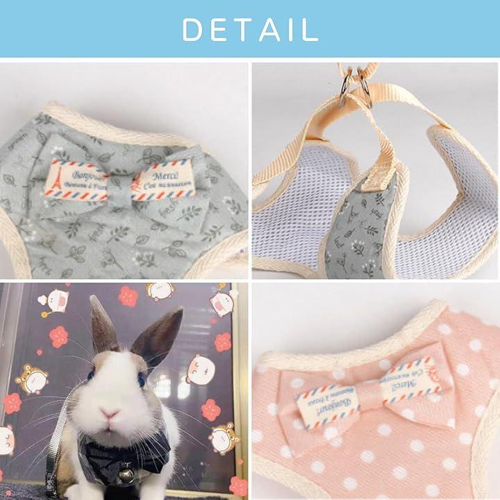 Uccellino リボン うさぎ ハーネス 通気性 長さ調整可 リード 簡単装着 ウサギ用ハーネス