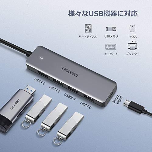 UGREEN USB 3.0 ハブ 4ポート拡張 USB ハブ USB C電源供給 セルフパワー/バスパワー USB 高速ハブ 軽量型 PS5 PS
