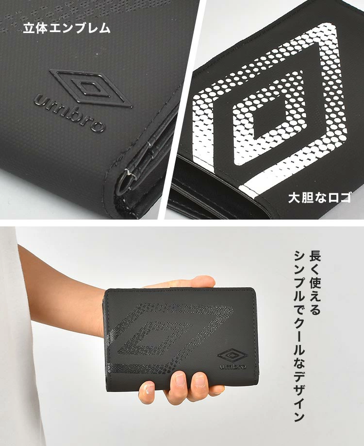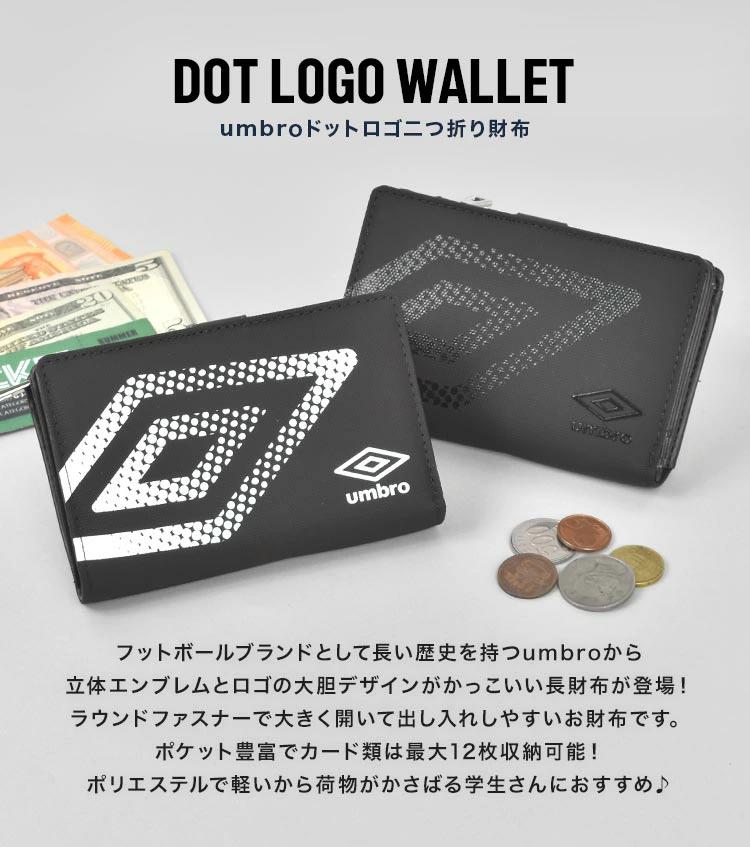 フットボールブランドとして長い歴史を持つumbroからエンブレムとロゴの大胆デザインがかっこいい二つ折り財布が登場!L字ファスナーで大きく開いて出し入れしやすいお財布です。ポケット豊富でカード類は最大12枚収納可能です。ポリエステルで軽いから荷物が嵩張る通学に便利◎