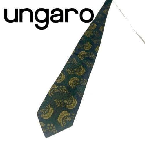 こちらは ungaro ウンガロ 絹100% ネクタイ 和柄 ダークグリーン 花柄 日本製 になります。