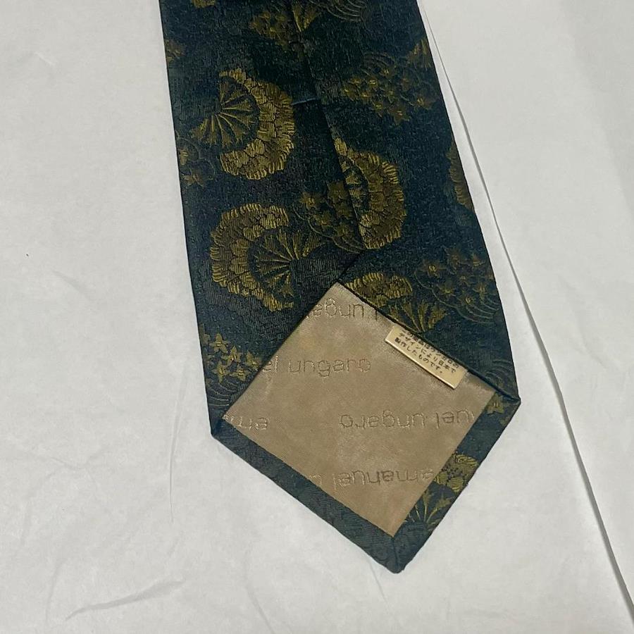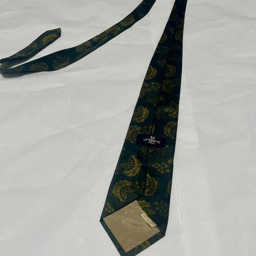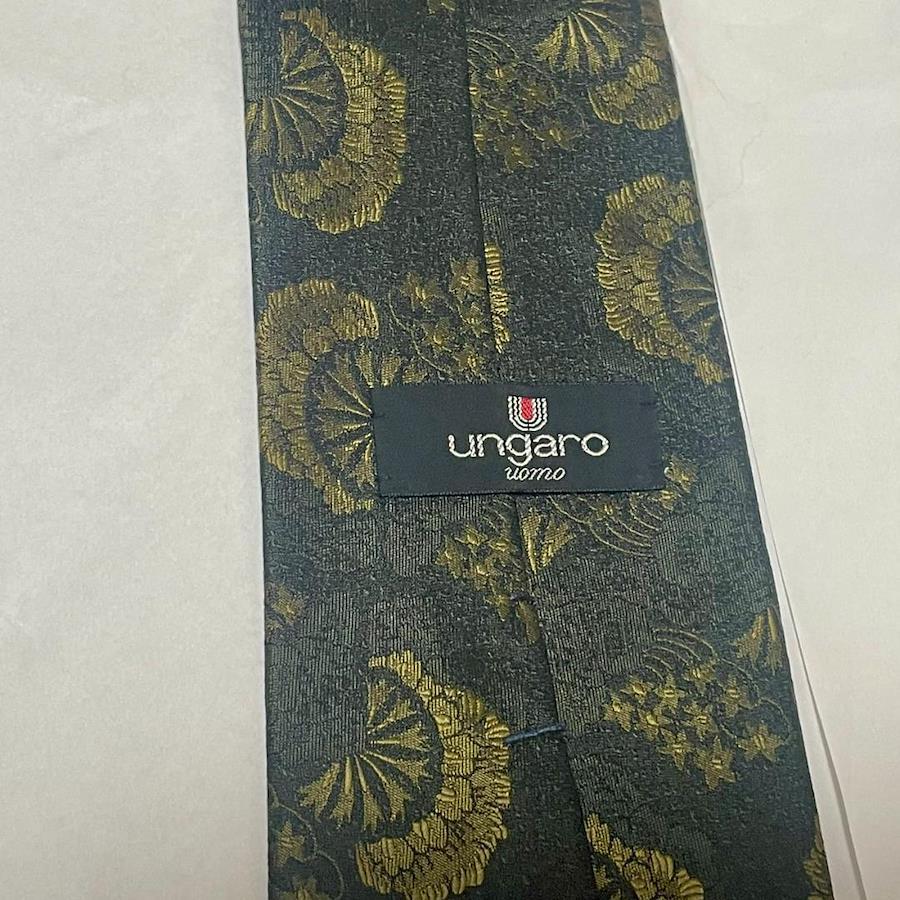 ☆こちらの商品はUSED品ですので新品や未使用品をお求めの方はご遠慮ください。ダークグリーンの花柄デザインのungaroネクタイ。