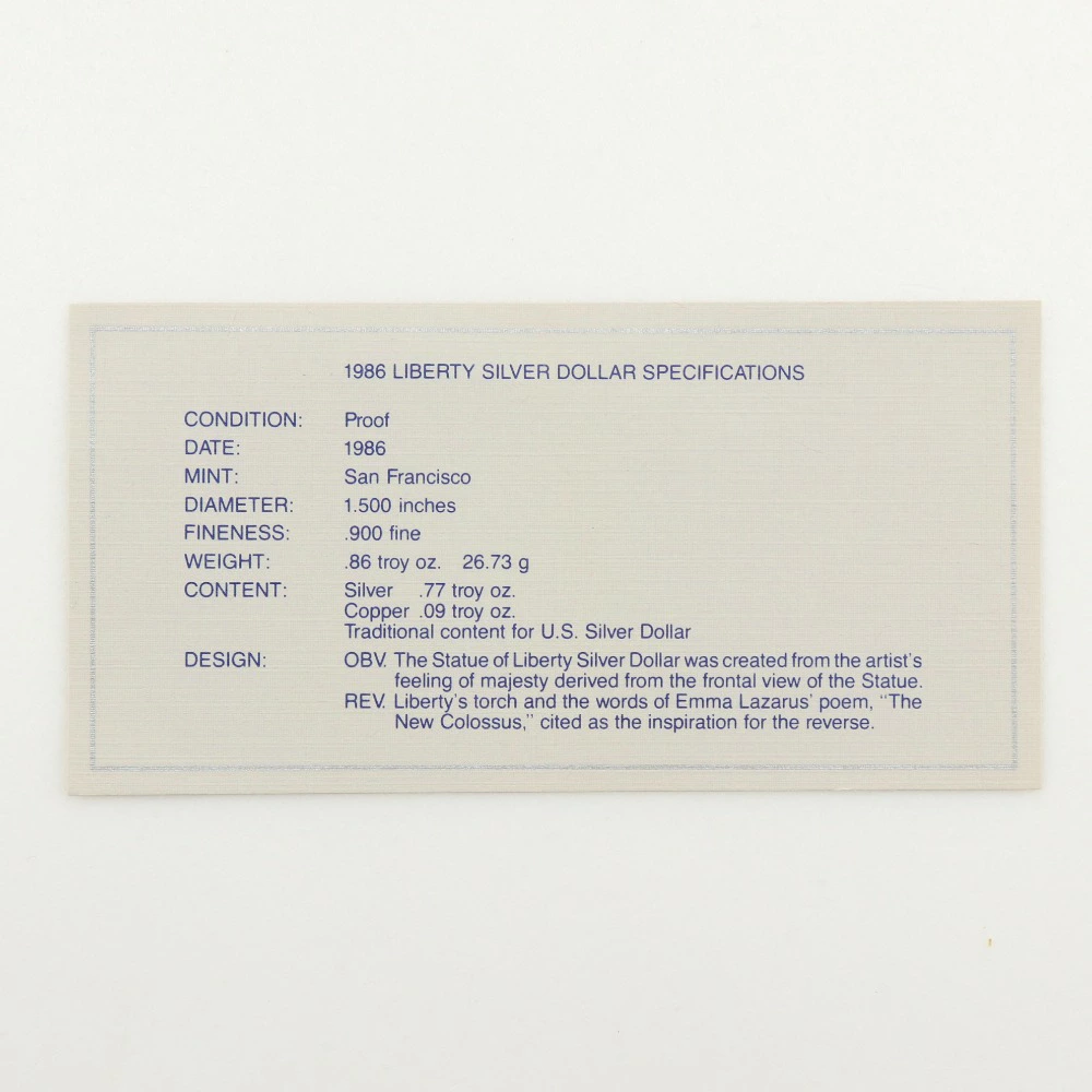 | ライン | アメリカ 自由の女神 プルーフ銀貨 1ドル |