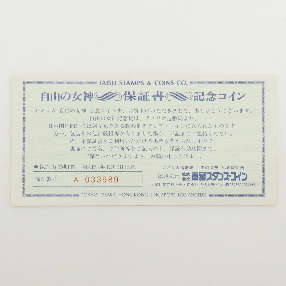 | 商品説明 | ニューヨークの自由の女神像は1886年にアメリカ独立100年を記念してフランスから寄贈されたもので、それから100年を記念したコインです。 ※こちらのお品物は、代金引換のお支払い方法はご使用できません。 ポスト投函ですので、配達希望日時のご指定も出来かねます。 (追跡番号あり、保証なし) ご了承下さいませ。 |