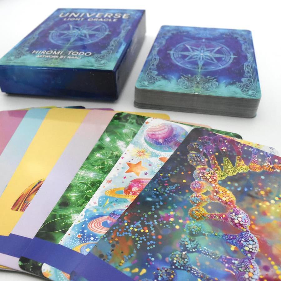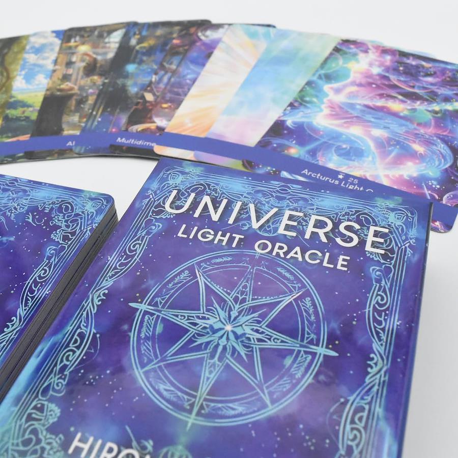 『UNIVERSE LIGHT ORACLE(ユニバースライトオラクル)』は、あなたの内なる周波数をあげて、個の私から、地球意識、銀河宇宙意識、さらには魂の道(宇宙の源・無条件の愛)へと還るためのパワフルなカードです。