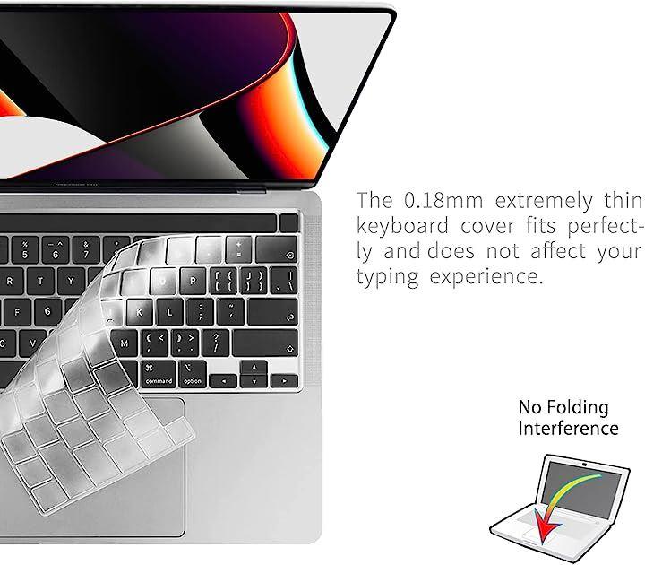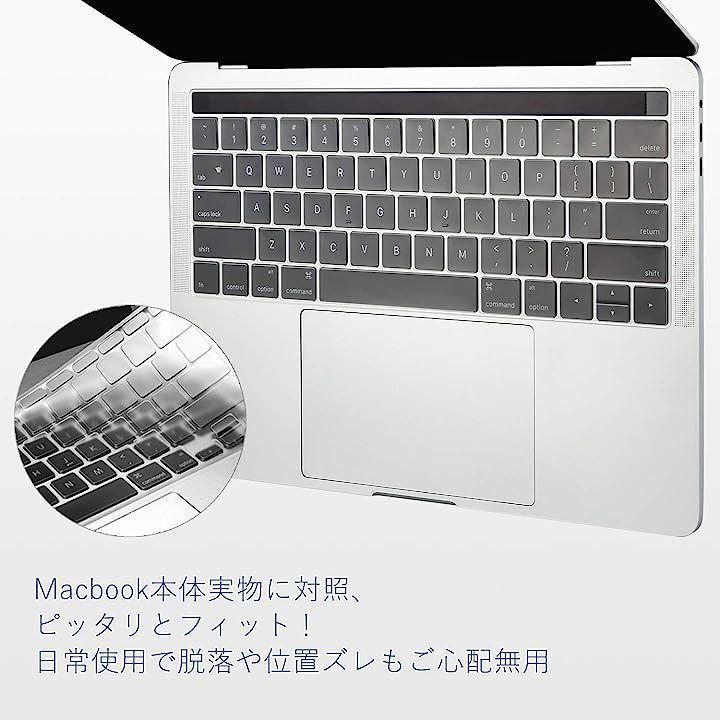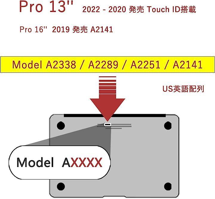 「対応機種」MacBook Pro 13インチ (2022 M2チップ / 2020 M1チップ) / 2019 発行のMacBook Pro 16 インチ (2019 Touch Bar 付き) 専用に設計される英語US配列キーボード カバーです。
