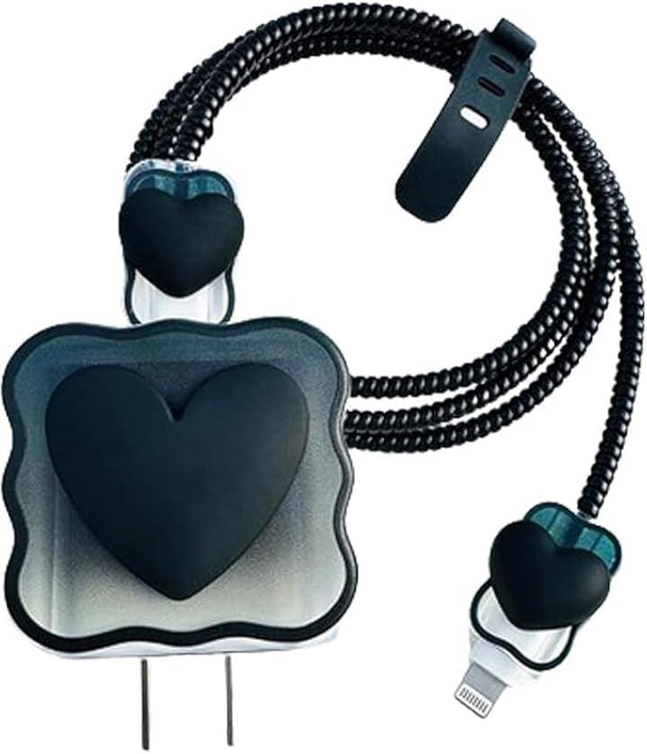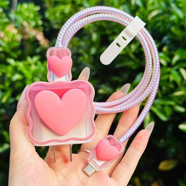 USB-C充電器カバー アップル用 18W/20W クリアソフト 3Dラブハートデザイン アイホン 11-14 Pro Max対応