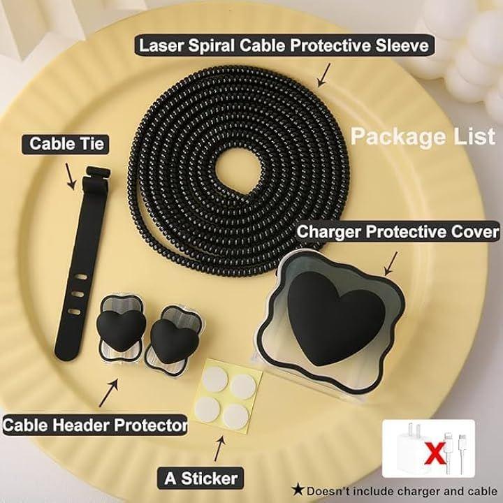 充電器カバー 5 in 1 = 充電器カバー 1 + ケーブルプロテクター 2 + ケーブルラインワインダープロテクター 1 + ケーブルラインタイ 1