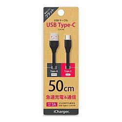 USB Type-C USB Type-A コネクタ USBフラットケーブル iCharger ブラック PG-CUC05M16 [50cm]