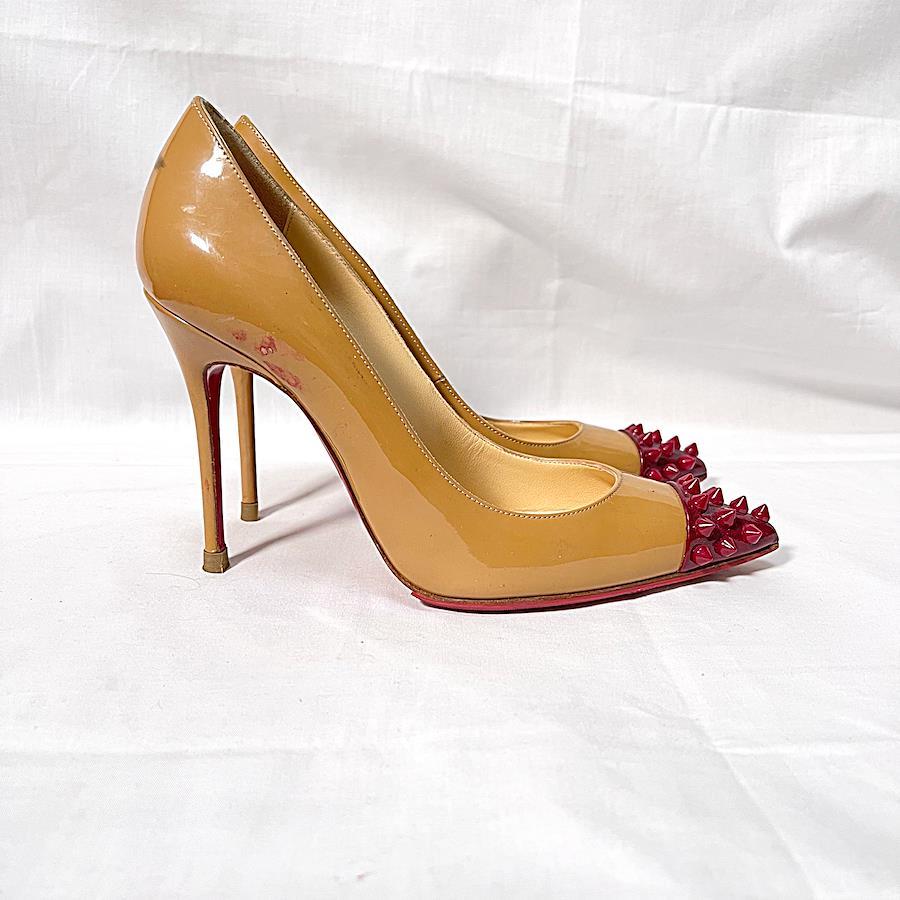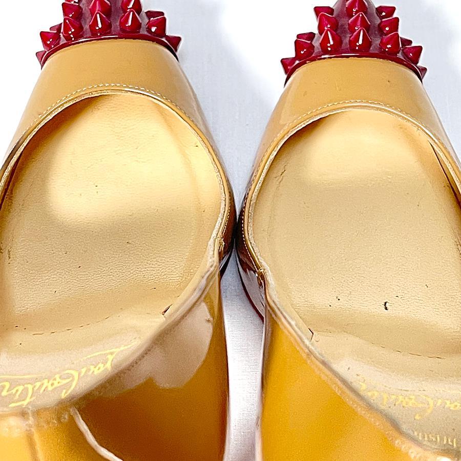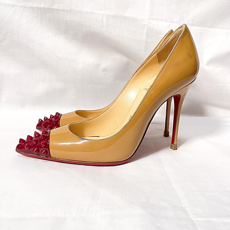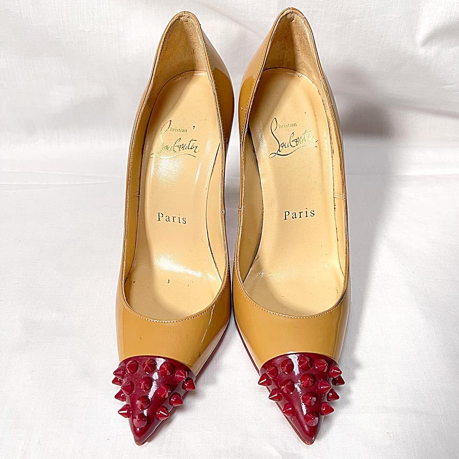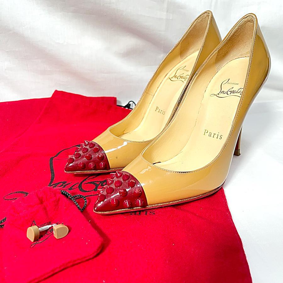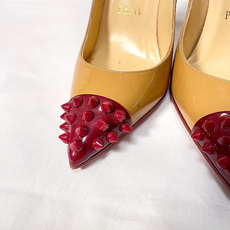 【ブランド】Christian Louboutin【品名】スタッズパンプス【対象】レディース【サイズ】 34【実寸(cm)】ヒール9.5cm*多少の誤差はご容赦ください【素材】【原産国】イタリア【カラー】ベージュ レッド【商品状態】ところどころにやや汚れが散見されます。ヒールの脚に小傷があります。その他、写真に写っている以外にも軽微な傷や汚れなどがあるかもしれません。あらかじめご了承ください。【管理番号】WT5-2sh【付属品】保存袋【備考】-