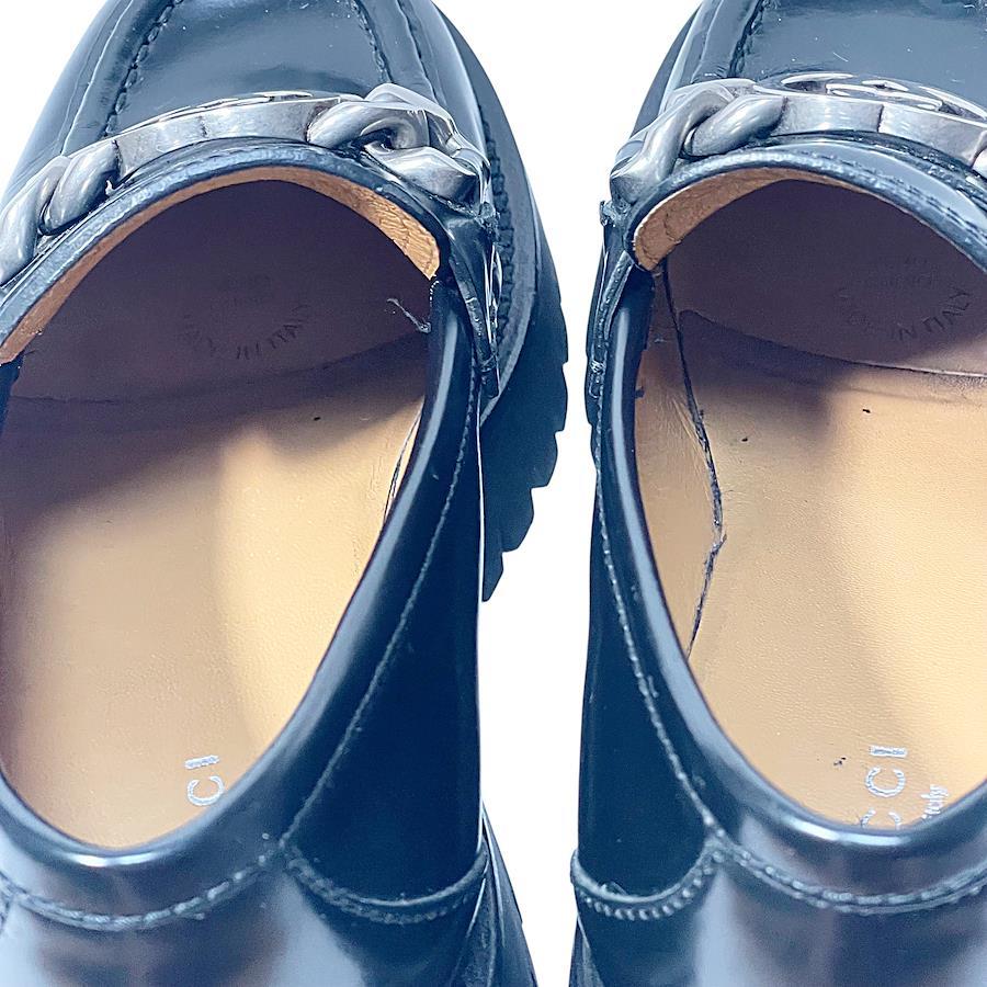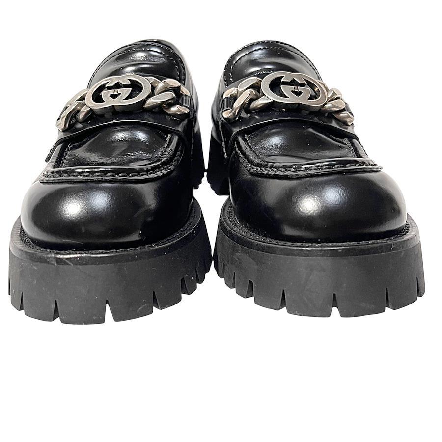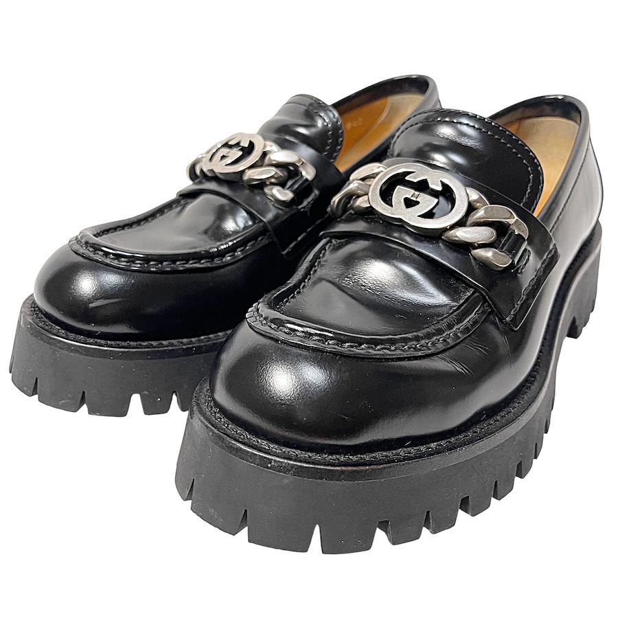 【ブランド】グッチ【品名】ローファー【対象】レディース【サイズ】37.5 24.5cm相当【素材】【原産国】イタリア【カラー】ブラック 黒【商品状態】かかと付近にごく軽微な傷と、内側にやや使用に伴う汚れ。主観ではそれほど目立たないものと判断しております。中古品につき軽微な傷や汚れなどはご容赦くださいませ。【管理番号】WT5-sh【付属品】なし【備考】-