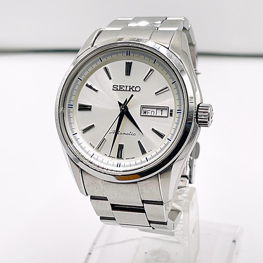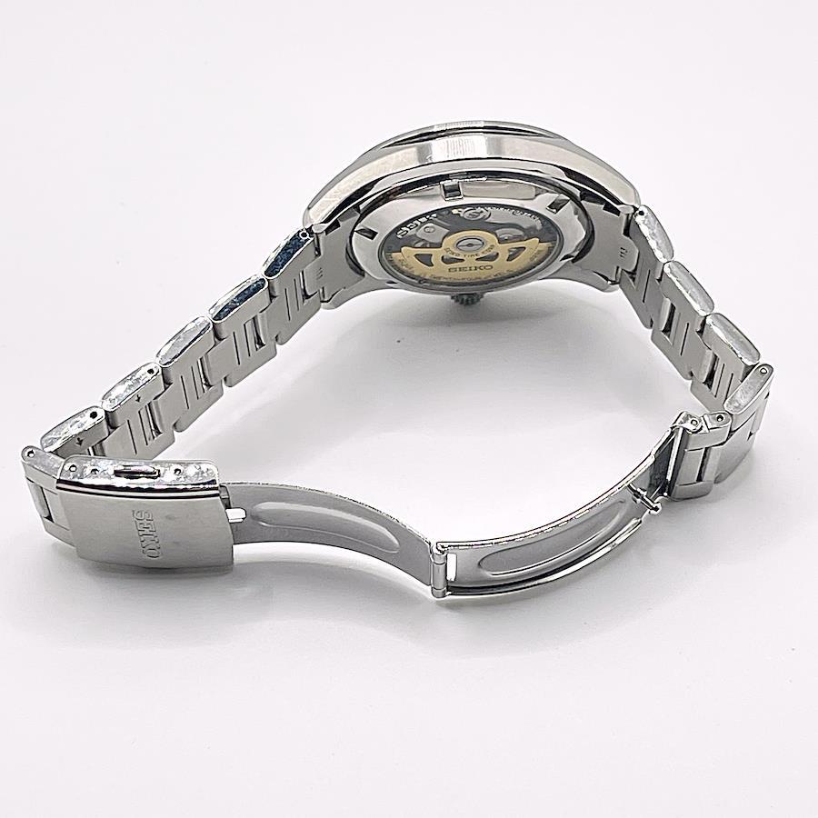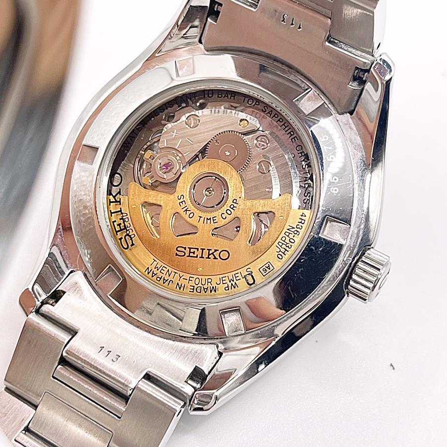 【ブランド】セイコー プレザージュ【品名】自動巻き時計【対象】メンズ【サイズ】-【実寸(cm)】フェース横幅:4厚み:1腕周り;16*多少の誤差はご容赦ください【素材】【原産国】日本【カラー】シルバー、ホワイト文字盤【商品状態】フェース→良好ベルト→良好動作→稼働中。日差など細かな精度までは調べておりません。【商品番号】OJ12【付属品】なし